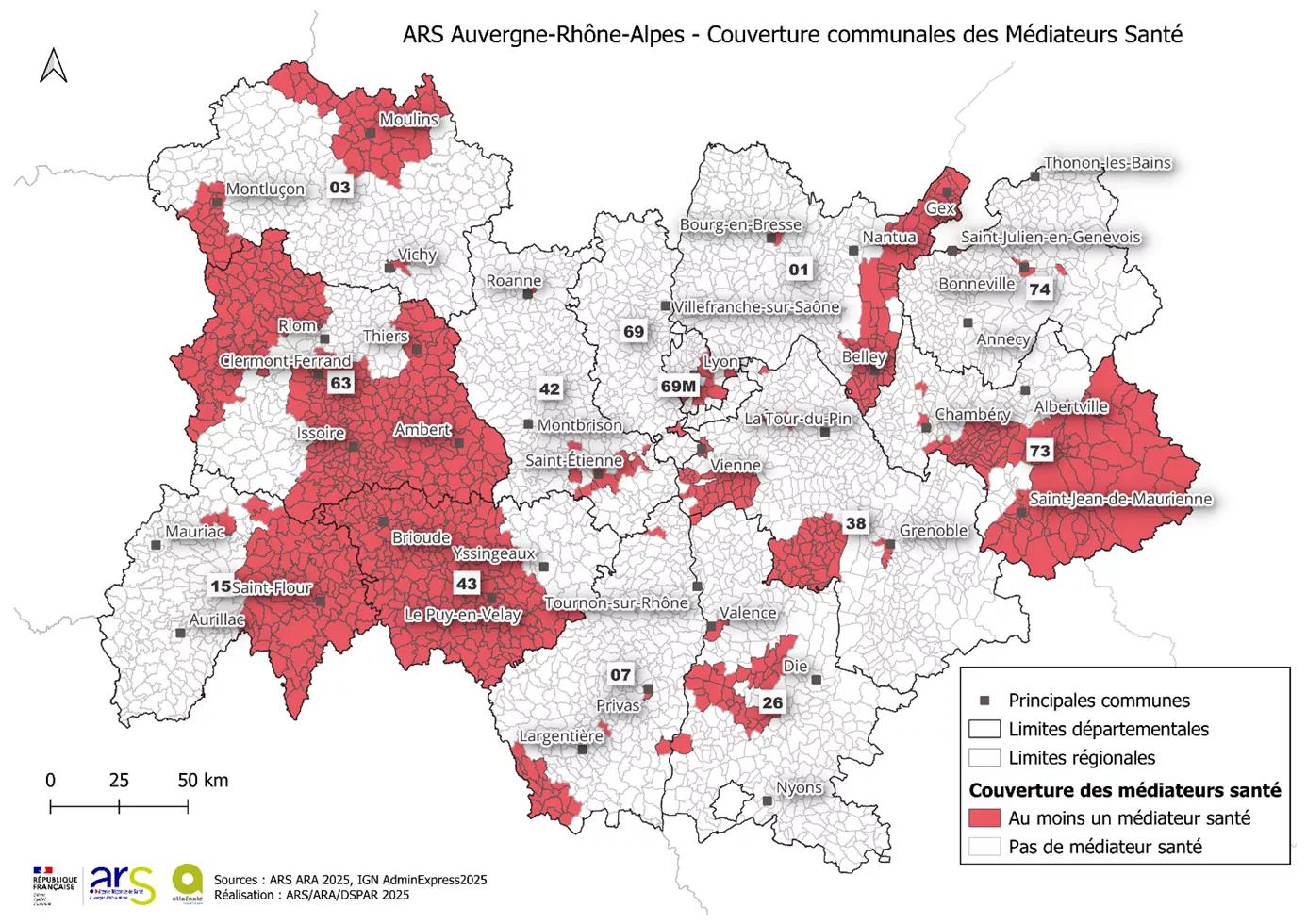 Fin 2025 : 70% des quartiers prioritaires politique de la ville (QPV) sont couverts par un médiateur en santé ainsi que de nombreux autres territoires présentant une défavorisation sociale élevée (urbains ou ruraux). 1 083 communes sont couvertes par au moins un médiateur en santé ce qui représente une population de 3 212 454 habitants soit 39 % de la population.