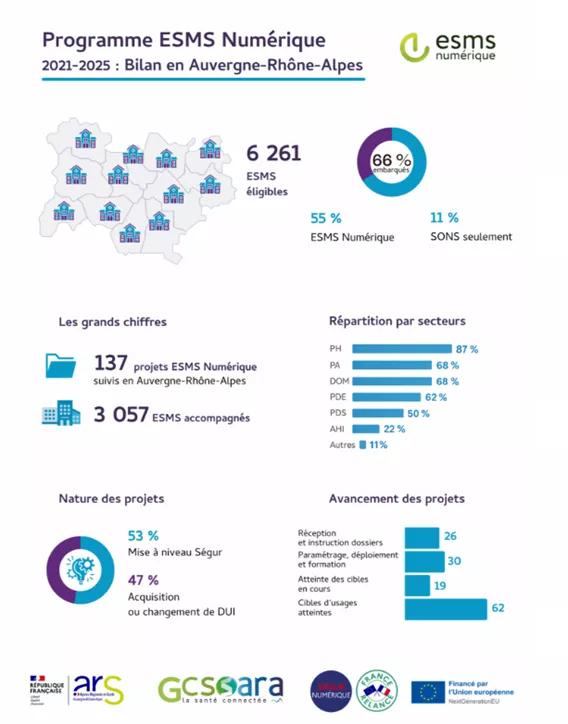 Programme ESMS numérique 2021-2025 - Bilan en Auvergne-Rhône-Alpes en quelques chiffres